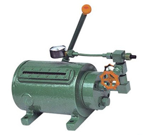3、安装使用时将出油孔的丝堵去掉,与泄压系统的管路连接,注入合成锭子油,搬动手柄向